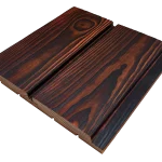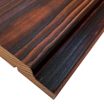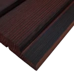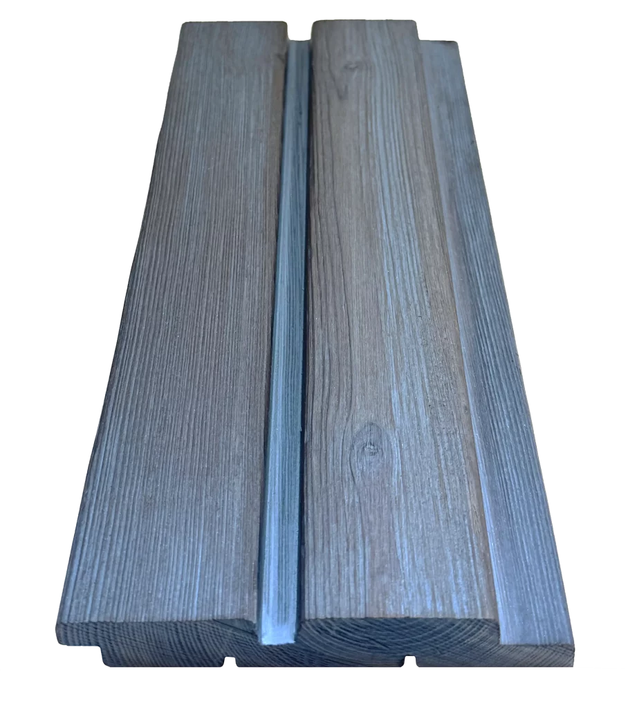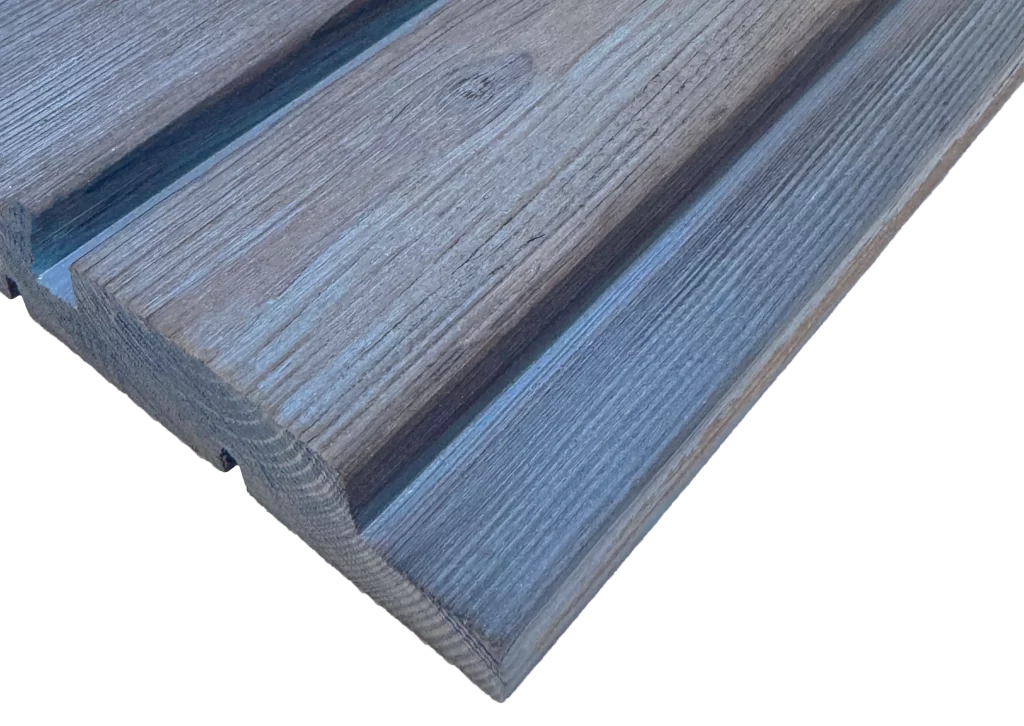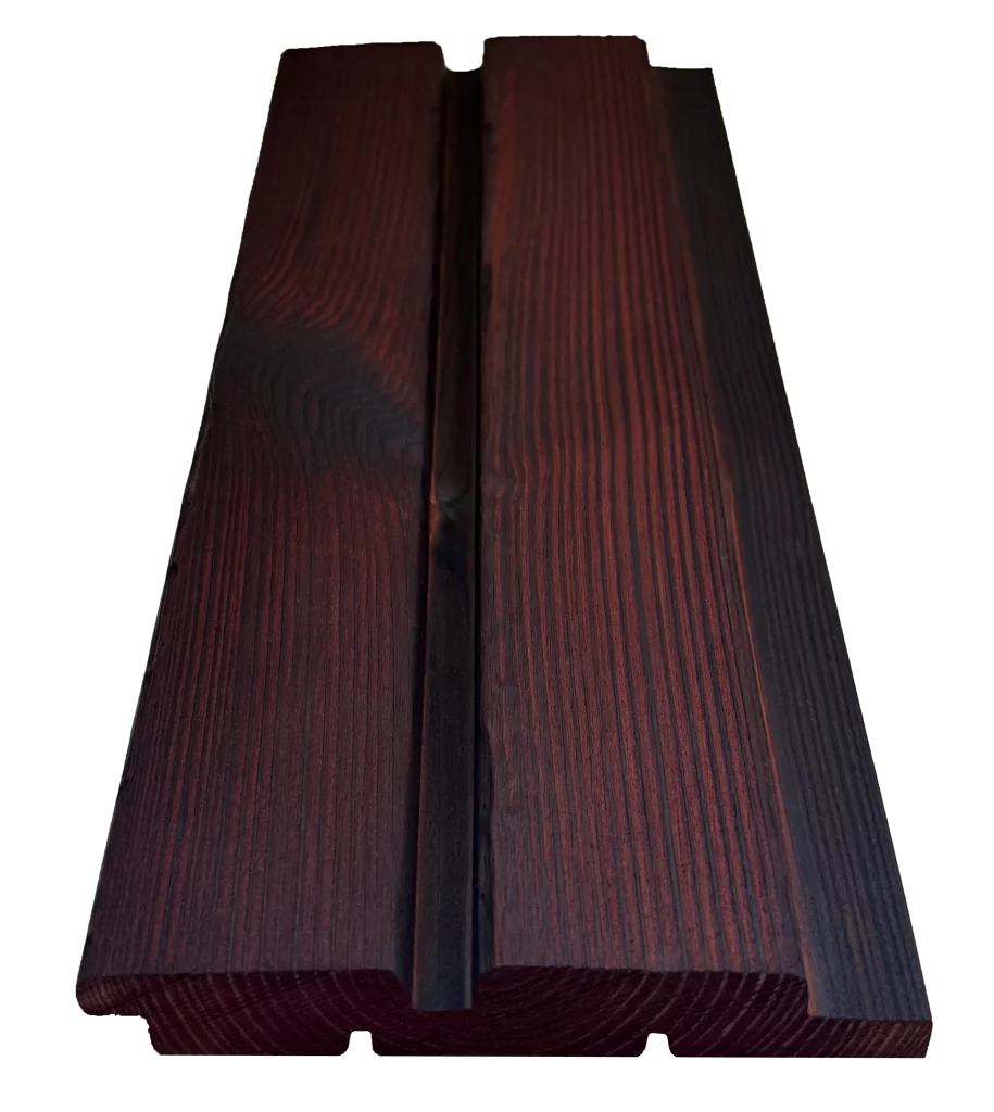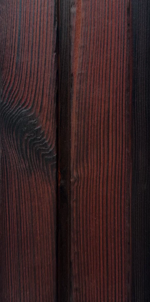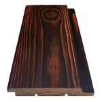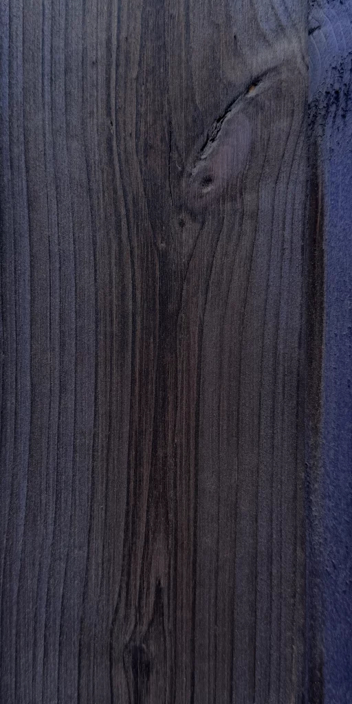Our industrially charred spruce and pine boards are treated with controlled flaming, reaching a burn depth of up to 3 mm. During post-processing, the brushing stage removes excess carbonized particles while preserving a distinct wood grain and a uniform charred tonality.
