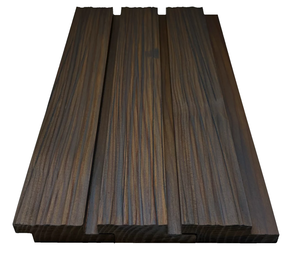 The result is a high-end, visually enduring, and technically stable cladding material, suitable for both ventilated facades and interior solutions. Thermo-wood stands out with its elegant tonality, controlled aesthetic aging process, and high long-term operational reliability.