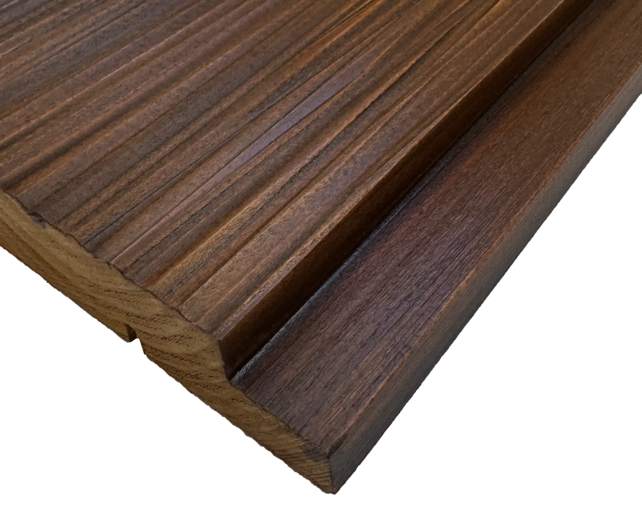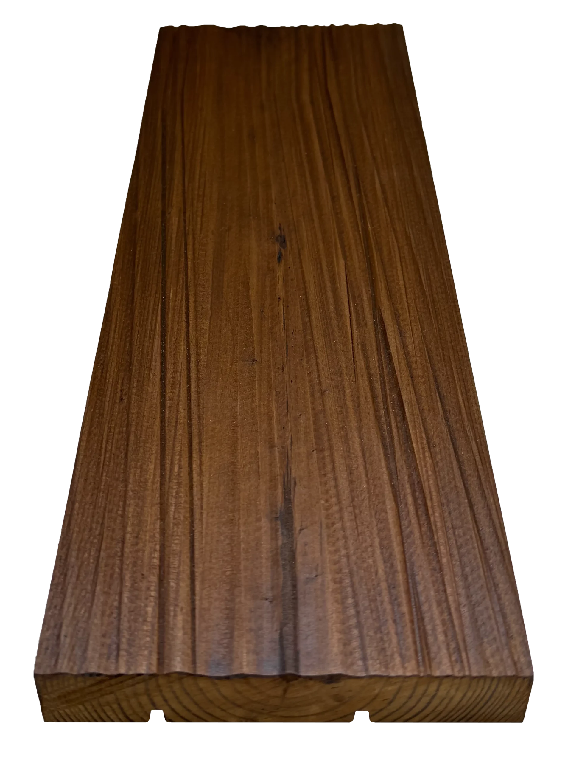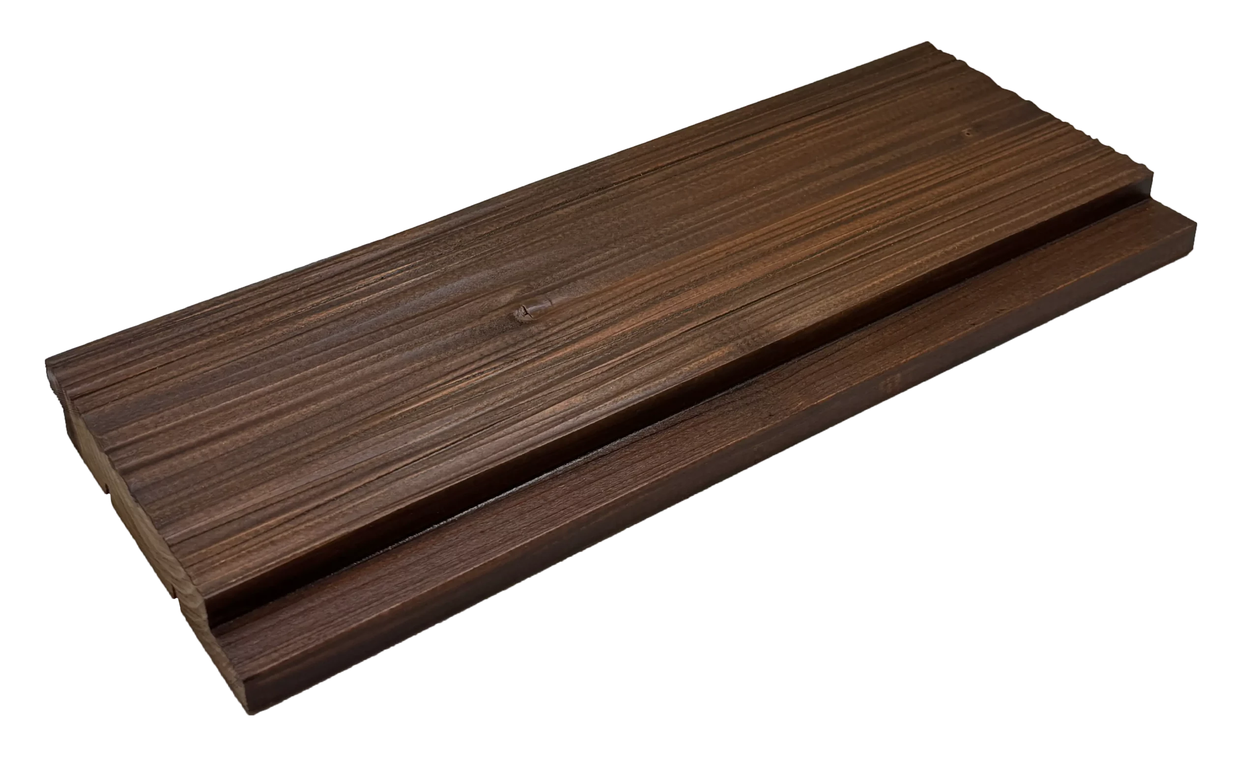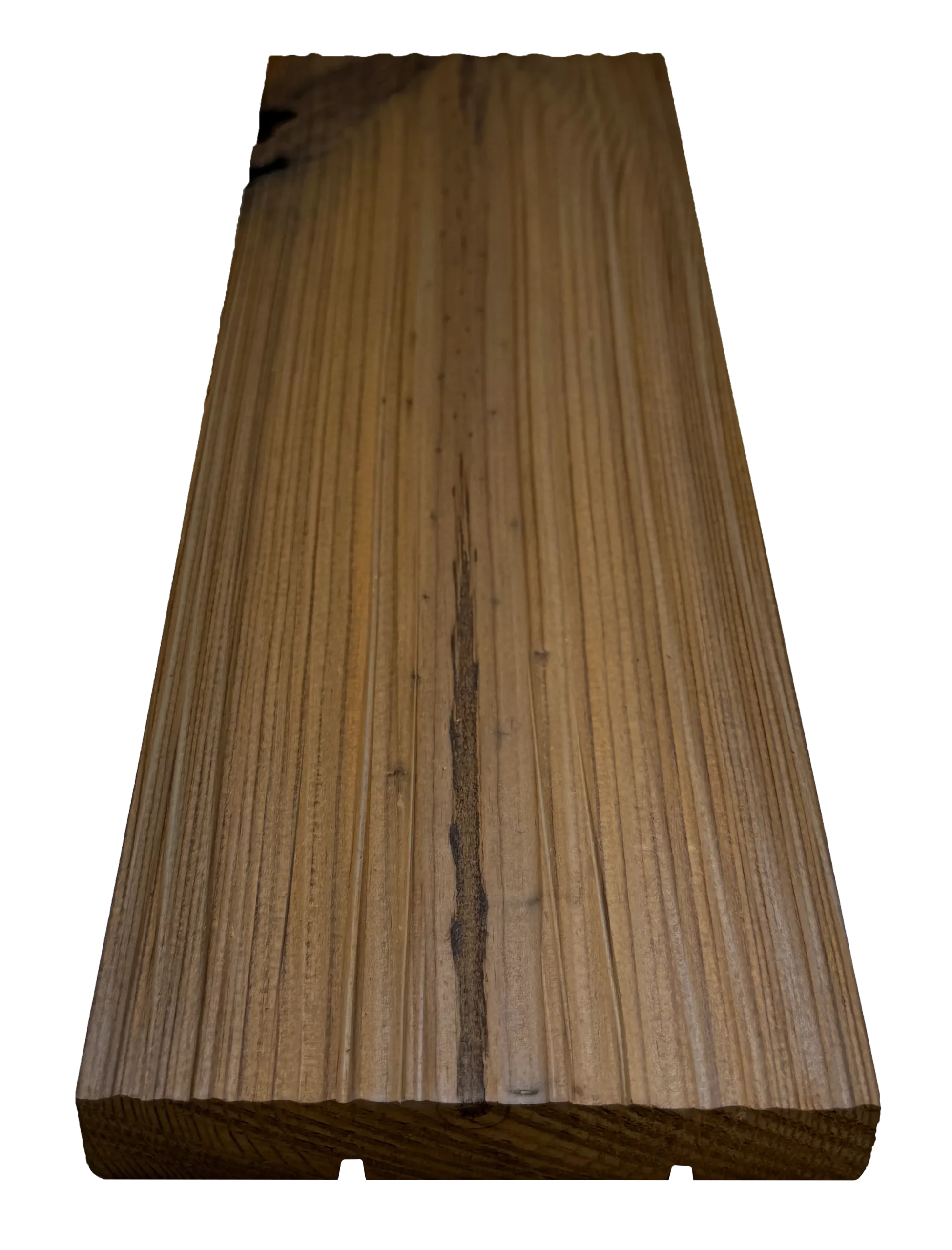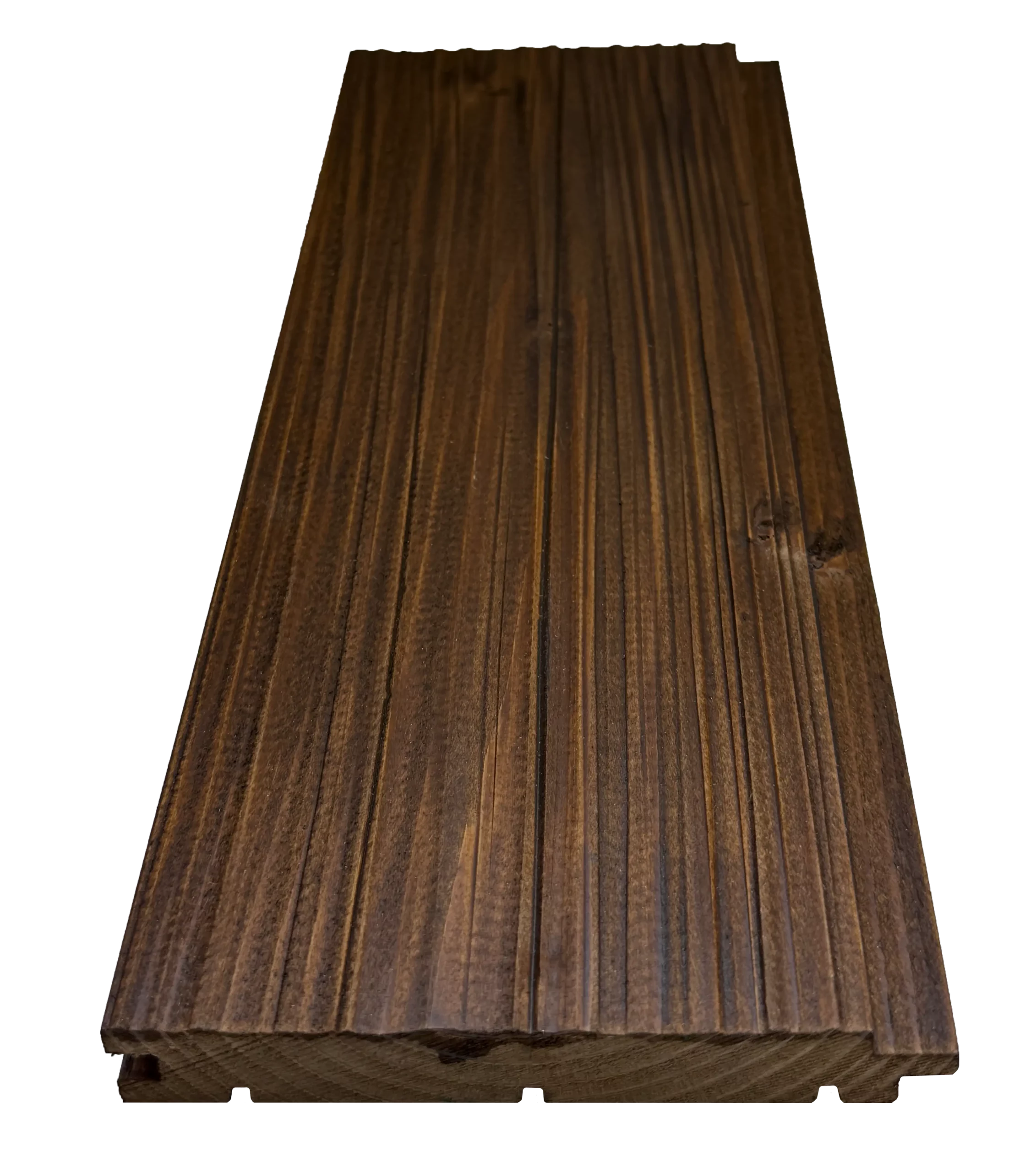 Termiski modificēti priedes un egles koksnes dēļi, kuru apstrādes procesā, paaugstinātas temperatūras (≈160–220 °C) un kontrolētas, skābekļa ierobežotas vides ietekmē, tiek strukturāli pārveidota koksne. Termoapstrādes laikā samazinās koksnes higroskopiskums, stabilizējas tās ģeometrija un būtiski uzlabojas noturība pret bioloģisko iedarbību un temperatūras svārstībām. Rezultātā materiāls iegūst vienmērīgu, siltu un dziļu tonalitāti visā šķērsgriezumā, kā arī paredzamu uzvedību ekspluatācijas laikā.